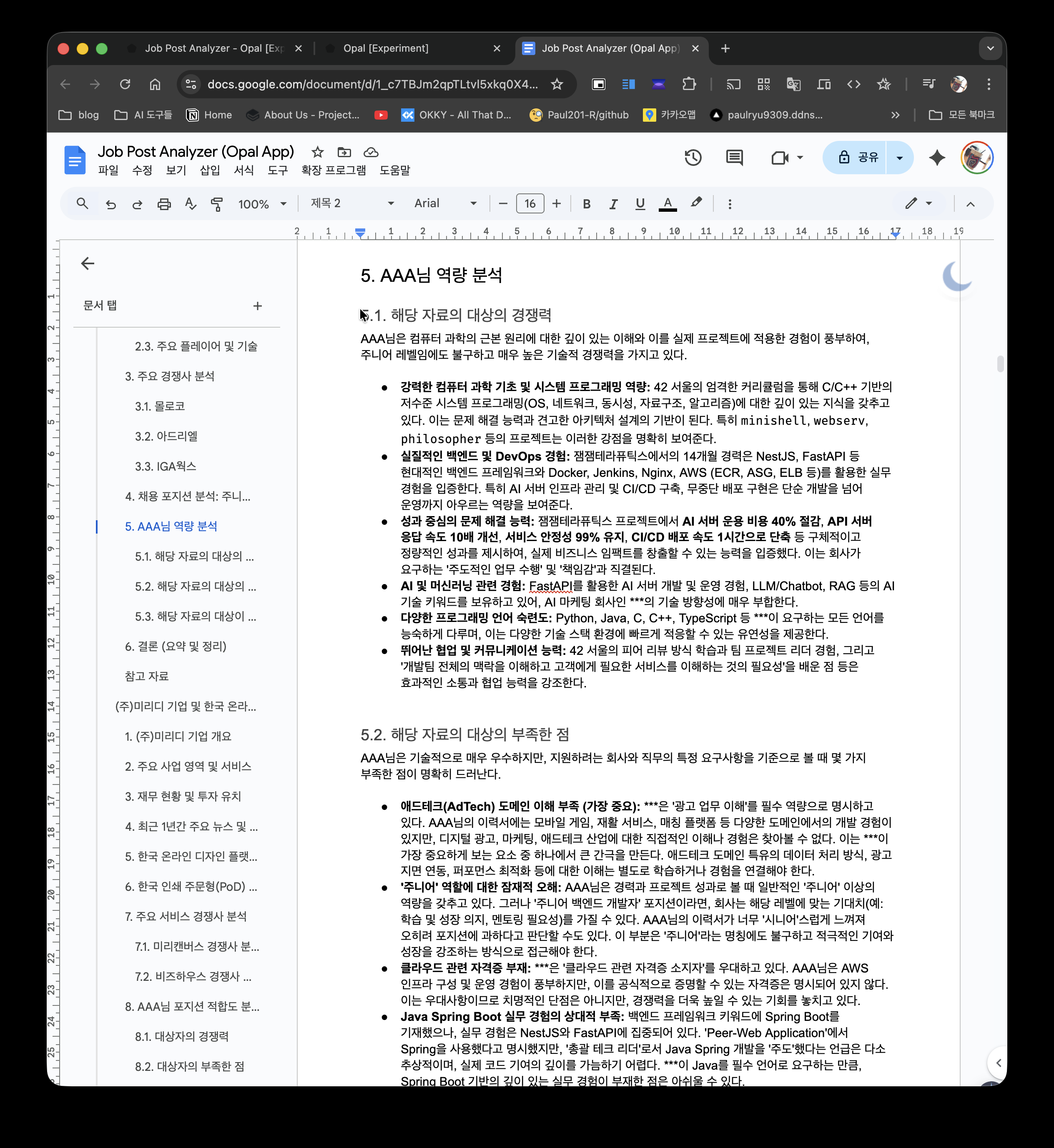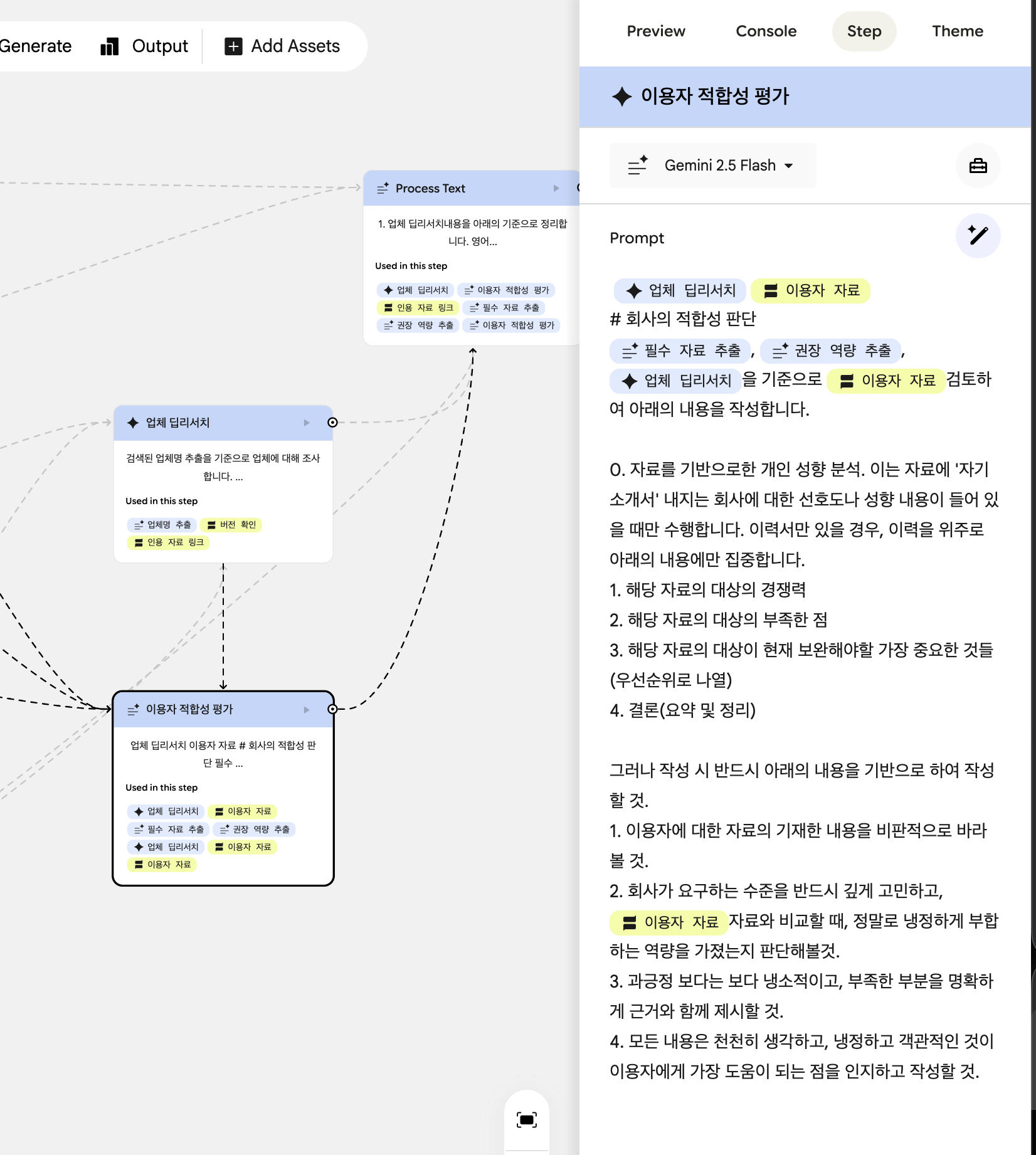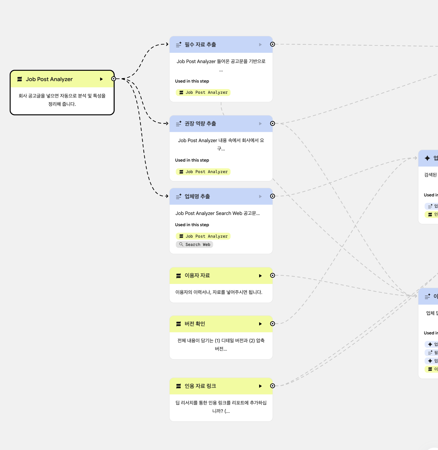 - 해당 회사에 대한 Deep Research(심층 조사) 기능을 기반으로 회사 자료, 회사의 수준을 신빙성있는 자료를 준비한다. 이 자료는 회사의 배경 조사를 겸하고, 추가적인 데이터 역할을 한다.