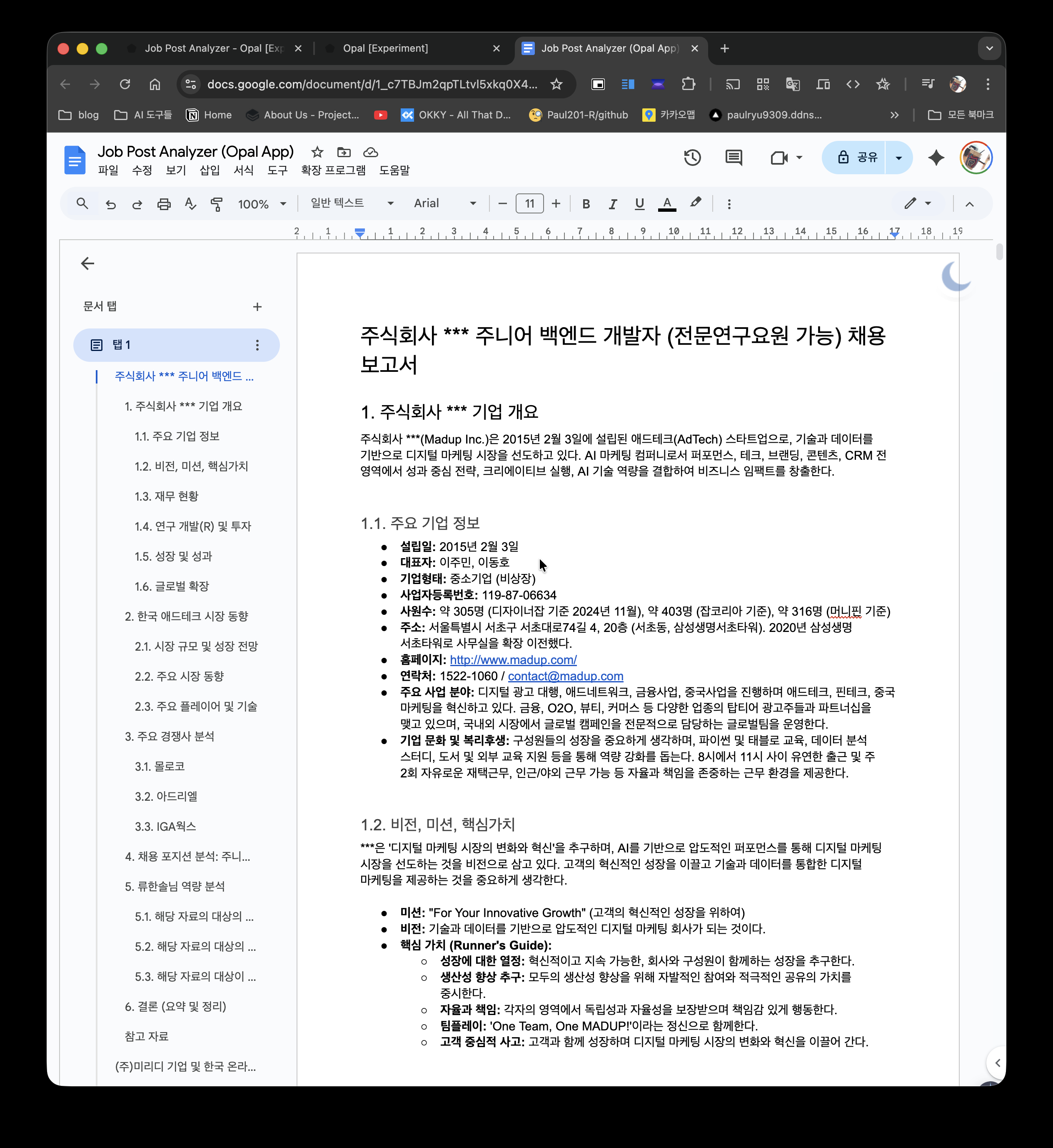 Google 의 Deep Research 는 이미 전부터 엄청나다고 호평이었다. 그리고 자료, 로직을 추가할 수 있게 되니 정말 만드는데 1시간, 데이터 수집 및 AI에게 일 시켜놓기 30분. 기다리고나니 4개의 업체와 업체의 현재 근황, 재정 상황 분석, 해당 시장 특성, 그리고 나의 역량이 도움이 될지. 부족한 점이 뭔지를 정리해주는 것이 가능했다. 정말 숏 앱이라는 개념에 부합하는 여러 서비스가 있었지만, 가장 안정적이면서도 정확한 서비스는 구글이란 생각을 새삼 안할 수가 없다고 느낀다.